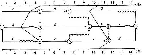 E.第10周末检查时工作G拖后1周,但不影响工期