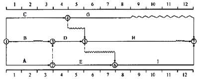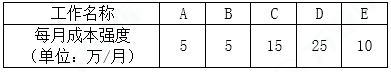 按最早开始时间编制的施工计划及各工作每月成本强度(单位:万元/月)如下图,D工作可以按最早开始时间或最迟开始时间进行安排。