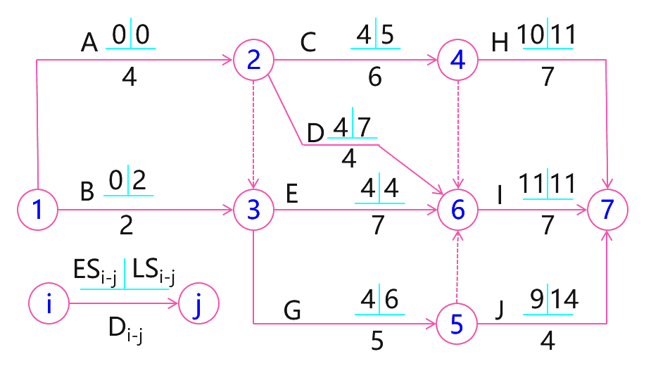 某工程双代号网络计划如下图,已标出各项工作的最早开始时间(ESi-j)、最迟开始时间(LS