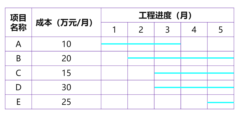 某项目施工成本计划如下图,则5月末计划累积成本支出为( )万元。