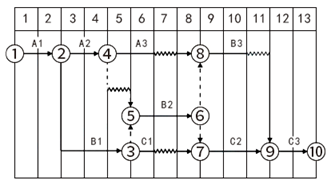 某双代号时标网络计划如下图(时间单位:天),工作总时差正确的有( )。