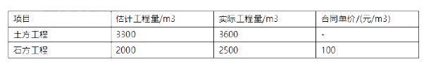 某土石方工程采用混合计价。其中土方工程采用总价包干14万元:石方工程采用综合单价合同,单价为100元/m3。该工程有关工程量和价格资料见下表,则该工程结算价款为( )万元。 A.34 B.39 C.37 D.42 正确答案是B
