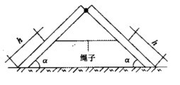 图示人字梯放置在光滑(忽略摩擦)地面上,顶端人体重量为P。关于绳子拉力与梯子和地面的夹角α、绳子位置h的关系的说法,正确的是( )。