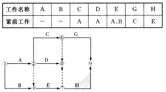 根据下表逻辑关系绘制的双代号网络图如下,存在的绘图错误的是( )。
