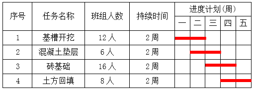 某项目基础施工的横道图如下图所示,第三周的施工人数是( )人。