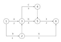 某双代号网络计划如下图(时间单位:天),计算工期是( )天。