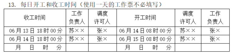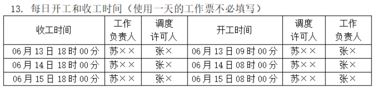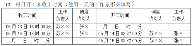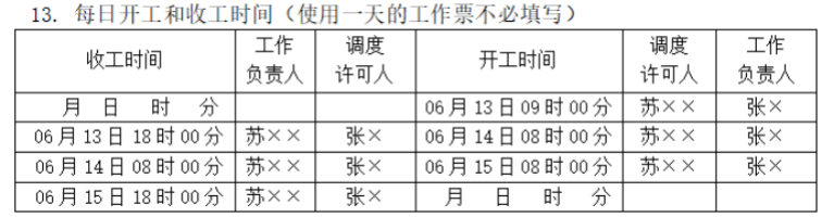 【单选题】假设本次工作只用了3天时间,工作票第13栏填写正确的一项是( )