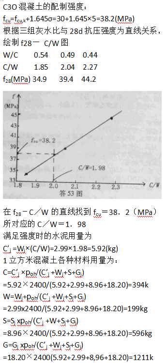 ,标准养护到28d的抗压强度分别为34.9、39.4、44.2MPa,试计算混凝土的实验室配合比(σ=5MPa,t=-1.645)。(8分)