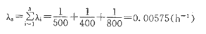 由于三个子系统寿命服从指数分布,所以三个子系统的失效率分别为:λ₁=1/500(h-1),λ₂=1/400(h-1),λ₃=1/800(h-1)串联系统的失效率为则整个系统的平均寿命为:1/λs≈173.9(h)