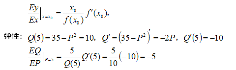 设需求函数为Q=35-P2,其中P和Q分别是价格与需求量,则P=5时的需求价格弹性为