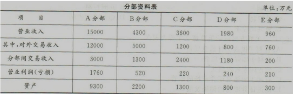 【正确答案】:各分部对外交易收入占该分部收入的百分比计算如下:A分部=12 000÷15 000×100%=80%B分部=3 000÷4 300X100%=69.77%C分部=l 200÷3 600×100%=33.33%D分部=800÷1 980×100%=40.40%E分部=760÷960×100%=79.17%计算结果显示,C、D分部的大部分收入不是对外交易收入,因此不能确定为报告分部。A、B、E分部的大部分收入是对外交易收入,符合大部分收入为对外交易收入的条件。其分部的营业收入占所有分部收入合计的百分比计算如下:A分部=15 000÷(15 000÷4 300+3 600+1 980+960)×100%=58.05%B分部=4 300÷(15 000+4 300+3 600+l 980十960)100%=16.64%E分部=960÷(15 000+4 300+3 600+1 980+960)×100%=3.72%从计算结果可知,A分部和B分部应确定为报告分期:同理,E分部营业利润占所有分部利润合计的百分比、资产占所有分部资产合计的百分比分别为7.12%、2.16%,均小于10%,不能确定为报告分部。