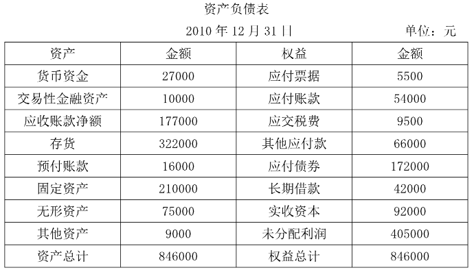 【正确答案】:负债总额=5500+54000+9500+66000+172000+42000=349000 资产负债率=349000÷846000×100%=41.25% 产权比率=349000÷(92000+405000)×100%=70.22% 权益乘数=846000÷(92000+405000)=1.70 三个指标都能反映资产、负债和所有者权益之间的关系,都假设负债资金和股权资金所形成的资产对负债有着切实的保障,但没有考虑资产的结构,这是它们共同的问题。