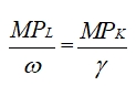 对于生产函数Q=f(L,K)和成本方程C=ωL+γK而言,在最优的生产要素组合点上应该有()