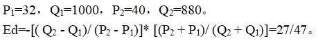 1986年7月外国城市公共汽车票价从32美分提高到40美分,1986年8月乘客为880万人次,与1985年同期相比减少了12%,求需求的弧价格弹性(用中点公式)。