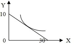 已知张某的无差异曲线和预算约束线如下图,商品X的价格为5元。 求:⑴张某的收入为多少?商品Y的价格为多少? ⑵他的预算约束
