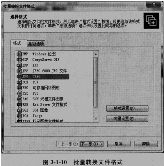 ②单击“工具”菜单栏中的“转换文件格式”选项,打开“批量转换文件格式”对话框,如图3-1-10所示。