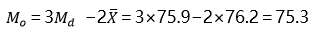若已求得一组数据的=76.2,Md=75.9,其众数是 (