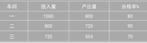 某企业生产某种产品需经过三个连续作业车间才能完成,资料如下,求三个车间产品的平均合格率。