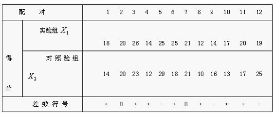 (2)求差数并记符号:计算X1 与X2每对数据的差数,“+”的个数n + = 7,“-”的个数n − = 3,差数为0不予考虑。于是有:n = n + + n − = 7 + 3 = 10。将n + 和n_中较小的一个记为r,本例r=3。