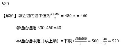 某连续变量数列,其末组组限为500以上,又知其邻组组中值为480,则末组的组中值为______。
