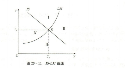 如图25-11所示,IS曲线和LM曲线把坐标轴分为了I、Ⅱ、Ⅲ、IV共四个区域。