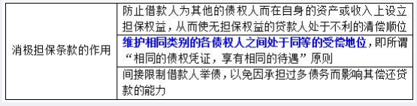 本题主要考查消极担保条款的作用。消极担保条款是无担保的贷款协议中最重要的项约定事项,选项A中的“有担保”表述有误,可排除。消极担保条款的作用如下所示: