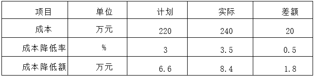 某项目施工成本数据如下表,根据差额计算法,成本降低率提高对成本降低额的影响程度为()万元。