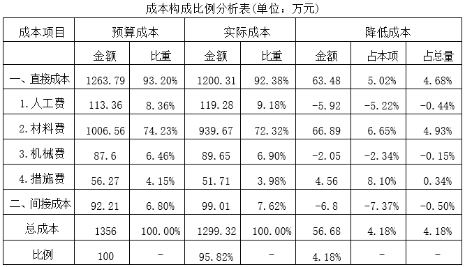 某项目成本及成本构成比例数据如下表,正确的有()。