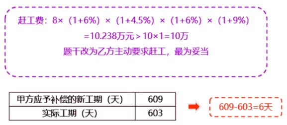 (3)工期提前奖励:[(600+9)-603]×1=6(万元)