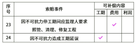 事件1:7月25日至26日基础工程施工时,由于特大暴雨引起洪水突发,导致现场无法施工,基础工程专业队30名工人窝工,天气转好后,27日该专业队全员进行现场清理,所用机械持续闲置3个台班(台班费:800元/台班),28日乙方安排该专业队修复被洪水冲坏的部分基础12m3(综合单价:480元/m3)。