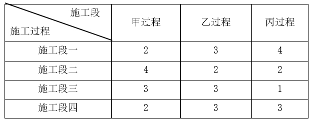 某分项工程包含依次进行的甲、乙、丙三个施工过程,每个施工过程划分成四个施工段组织流水施工,三个施工过程的流水节拍见下表。为了缩短工期,项目经理部的进度控制部门安排乙施工过程提前一天开工,按施工质量验收规范的规定,乙施工过程的每个施工段完成后至少要养护两天,才能进行丙施工过程的相应施工段施工。
