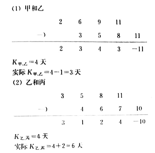 2)甲、乙、丙三个施工过程之间的流水步距分别为多少天?