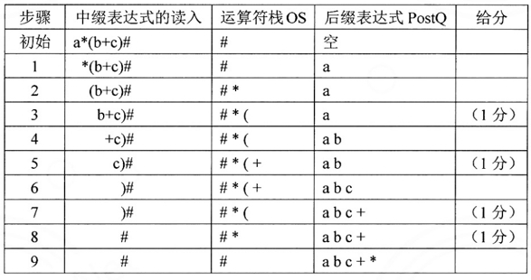 将中缀表达式“a*(b+c)”转换为后缀表达式,请回答下列问题。(1)画出转换过程中栈的变化过程。(2)写出转换后得到的后缀表达