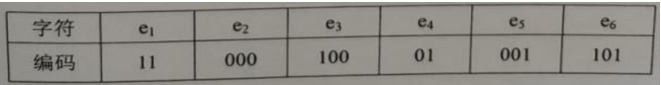已知字符集{a,b,c,d,e}中各字符出现的频次分别为2,3,6,8,10,对字符集进行哈夫曼编码,字符a的编码是000,字符