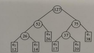 设电文字符集是{e1,e2,e3,e4,e5,e6},它们出现的次数分别为:38,12,17,26,14,20。现要为该字符集设