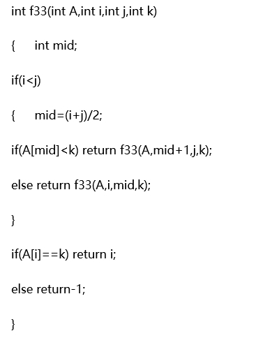 (2)在数组中采用二分查找(折半查找)法查找指定元素,若查找成功,则返回指定元素在数组中的下标;如果查找失败,则返回-1。