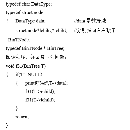 (1)设二叉树T如题31图所示,给出执行f31(T)的输出结果。