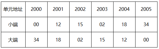 其中,操作码为34H,寻址特征为18H,位移量为0215H,立即数为1200H。将该指令分别按照小端方式和大端方式存储在2000号开始的按字节编址的存储单元中。试画出如下表格,并将结果用十六进制数填入。