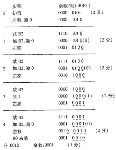用恢复余数法的原码一位除法进行5÷2运算。要求写出每一步运算过程及运算结果。