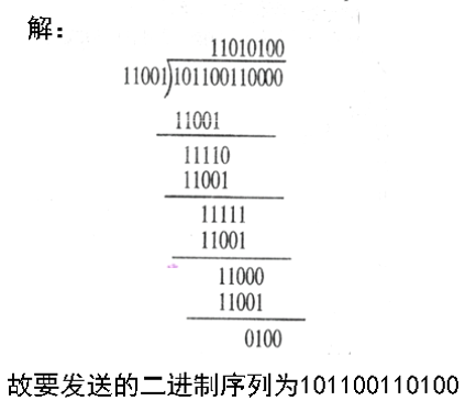 设要发送的二进制数据为10110011,若采用CRC校验方法,生成多项式为X4+X3+1,试求出实际发送的二进制数字序列。(要求