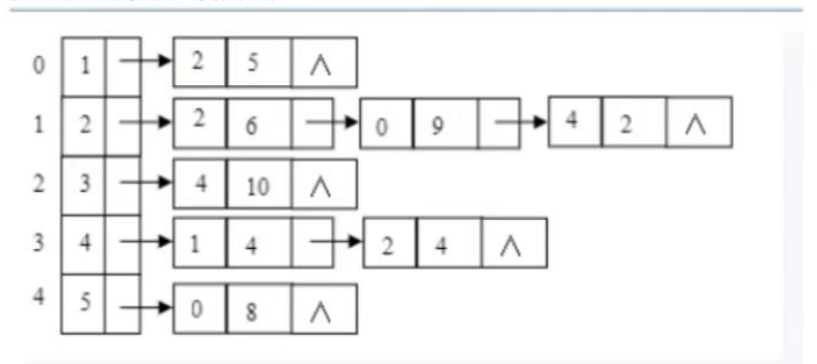 已知某有向图的逆邻接链表如下图所示,请先画出该有向图,然后给出其邻接矩阵和正邻接链表。