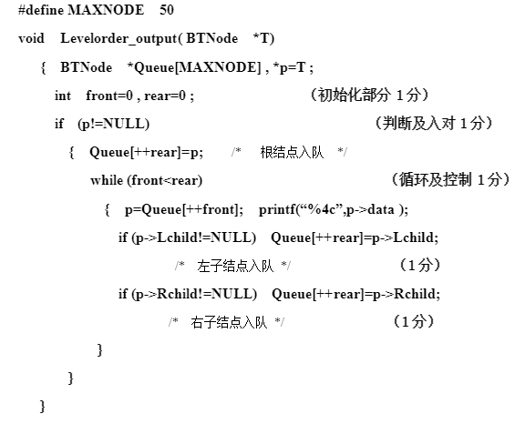 (2)写出从根结点开始按层次次序“自上而下,从左至右”输出树中的各结点的算法。(5分)
