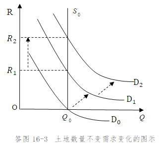 。当土地供给数额固定不变时,土地的需求变化成为了决定和影响土地地租的最重要因素。具体如答图16-3所示。