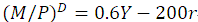 C=200+0.75(Y-T),I=250-500r,G=T=200