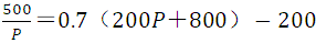 得P=1,Y=1000