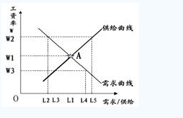 【题目解析】:当工资率为W2时,此时劳动力需求量为L2,劳动力供给量为L5,L5>L2,因此,出现劳动力供给大于劳动力需求,很可能出现不少劳动者失业的现象。