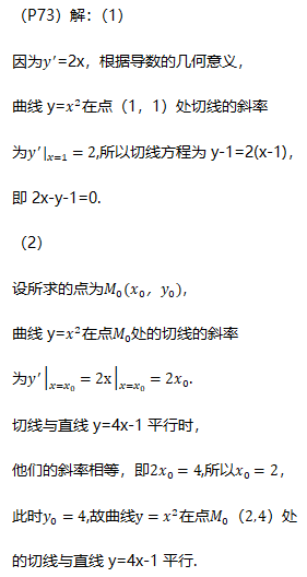 ,试求 120 (1)曲线在点(1,1)处的切线方程; (2) 曲线上哪一点处的切线与直线y=4x-1平行?