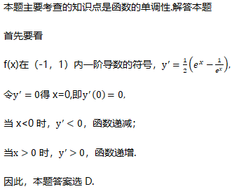 函数y=1/2 (e^x+e-x)在区间(-1,1)内 ( )