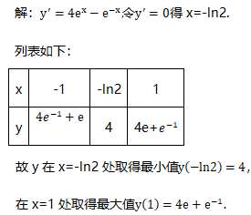 求下列函数的最大值与最小值: y=4ex+e-x,x∈[-1,1]