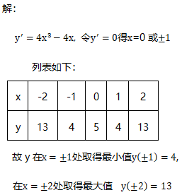 求下列函数的最大值与最小值: y=x4-2x2+5,x∈[-2,2]